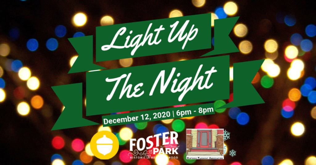 Our neighborhood is excited to partner with the Fairmont and Southwood Park Neighborhoods for the Light Up The Night event! Join us on Saturday, December 12th from 6-8pm to enjoy all the sights and sounds around the area!